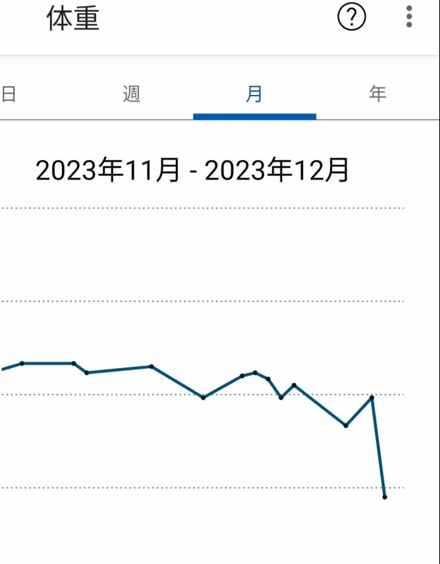 1ヶ月の体重推移グラフなんだけど、1目盛り3kgなのね なんか今朝突然すごい減ってるし(別に便秘解消とかじゃない、そもそも便秘じゃない)、妊娠してから右肩下がりはなぜ… 私そんなに吐かないし、まぁまぁ食べてる方だし、おやつも増えてるんだけどなぁ?