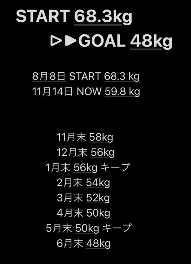 56kgで標準体重に入れるし 52kgで妊娠前に戻る?❤️‍? 中間目標立てつつ まだまだ長丁場だけど頑張る?