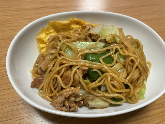 体重管理 妊娠4ヶ月でお腹も少し出てきたけど、体重は増えないなぁ〜 もう少し栄養摂らないとだめだよね。 特にたんぱく質! 今夜はオム焼きそばにしてみました。