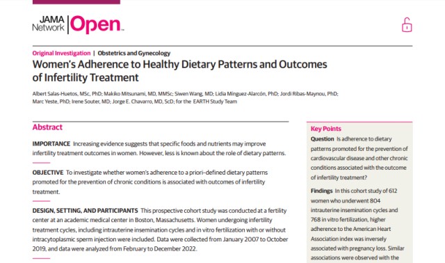 アメリカ心臓協会(AHA)が推奨する食事(魚、全粒穀物、オメガ3脂肪酸、葉酸が多い)を妊娠前に取ることで、流産のリスクが13-15%減少すること示唆する論文。 612名の女性を対象に食事と流産について調査したところ、AHAが推奨する食事パターンの女性では、流産のリスクが低いことが確認された。