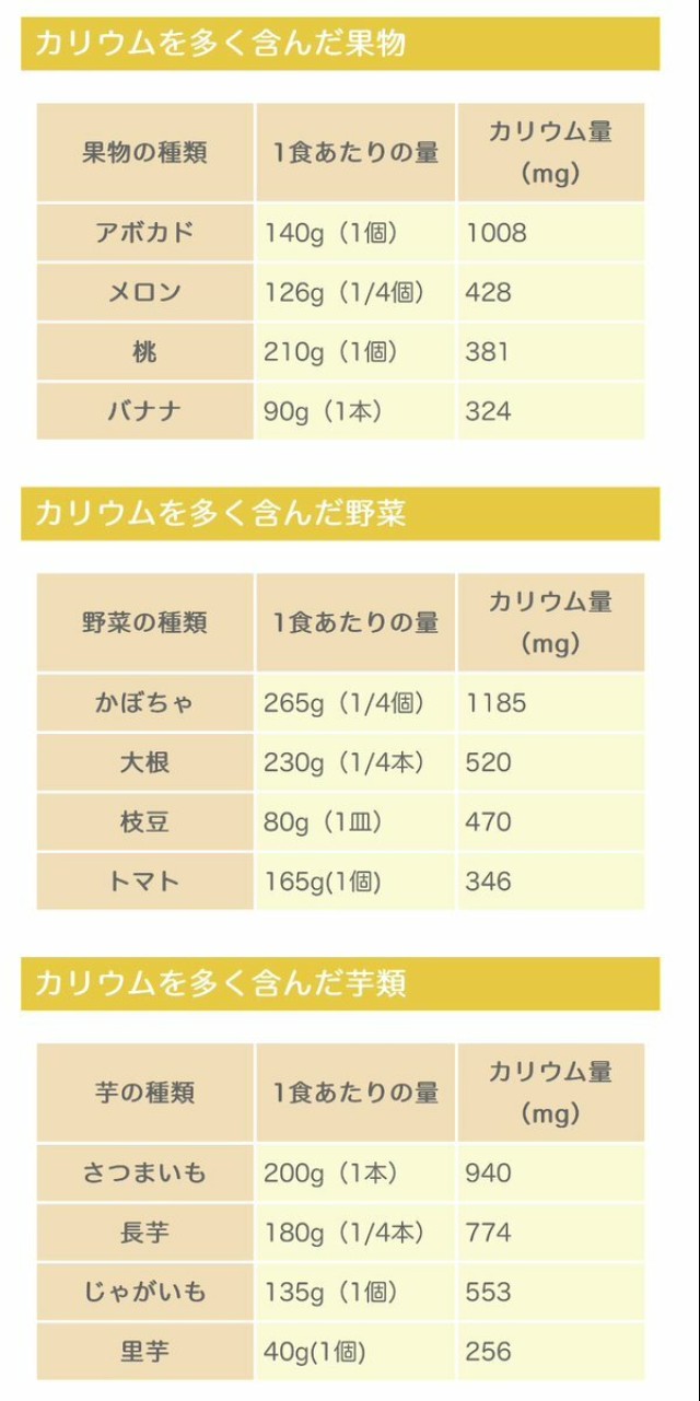 妊娠中の気になる「むくみ」を食事で対策するにはカリウム。水に溶けやすく1日の摂取量に上限もなし。アボカド、かぼちゃ、さつまいもは1000mg前後。