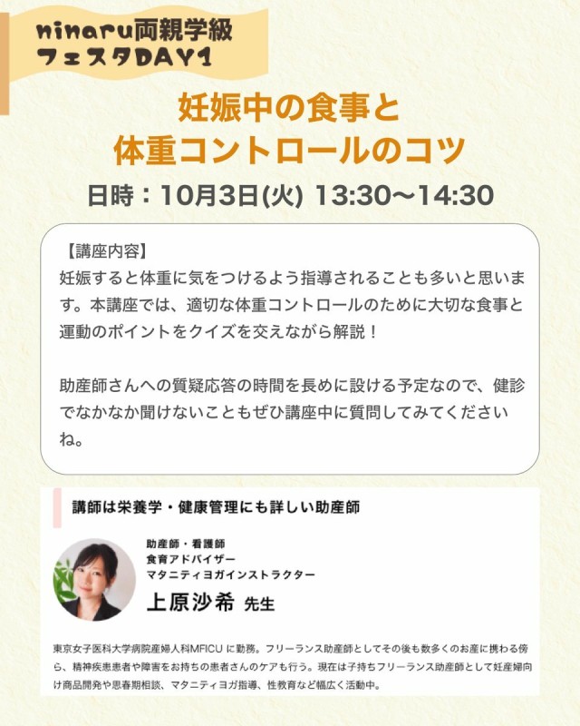 \ フェスタ講座紹介③/ ?イベント1日目? 「妊娠中の食事と体重コントロールのコツ」 妊娠中の適切な体重増加のための食事と運動について、栄養学にも詳しい助産師さんが解説?‍⚕️ 今すぐできる具体的なアドバイス盛りだくさんです! ▼申込みはこちら