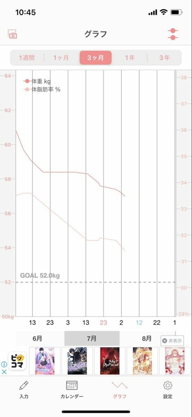 体重管理 産後太りから妊娠前体重に戻らずまだまだ体重多いけど6月に友達とダイエット同盟組んでから着実に体重が減ってる!この調子で頑張ろ?