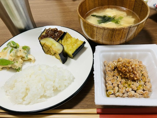 体重管理 【150日チャレンジ・114日目】 《体重》 (妊娠前+5.8kg) 《運動》 ストレッチ 軽くだけど体を動かし始めたからか、体重増えてきたw 今日はナスおかず尽くし❗️補食もナス?❗️なんて健康的なの✨ ナス料理何種類かしてきたけど、オリーブオイル&塩が最強?✨