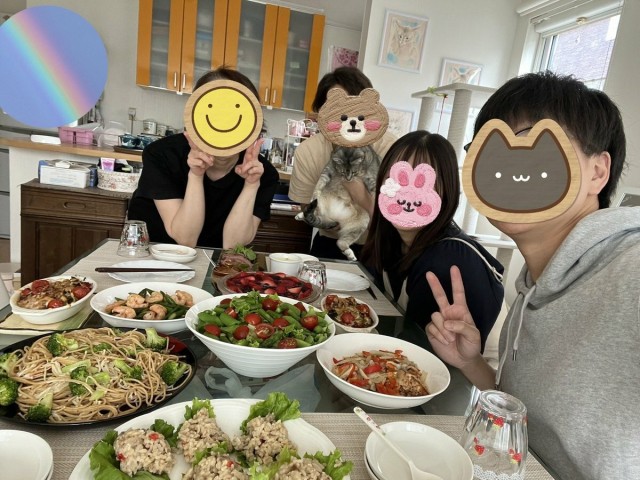 体重管理 本日は少し早い娘の誕生日パーティー????今年は夫が仕事忙しくて帰省出来ないので4人のみで?7月に出産予定なので私は昨夜からめっちゃ料理頑張りました?妊娠後期なので栄養バランスとカロリーや糖分等を考慮して久しぶりに買い物段階から気を遣いました?娘は体重が増えなくて苦労してます?