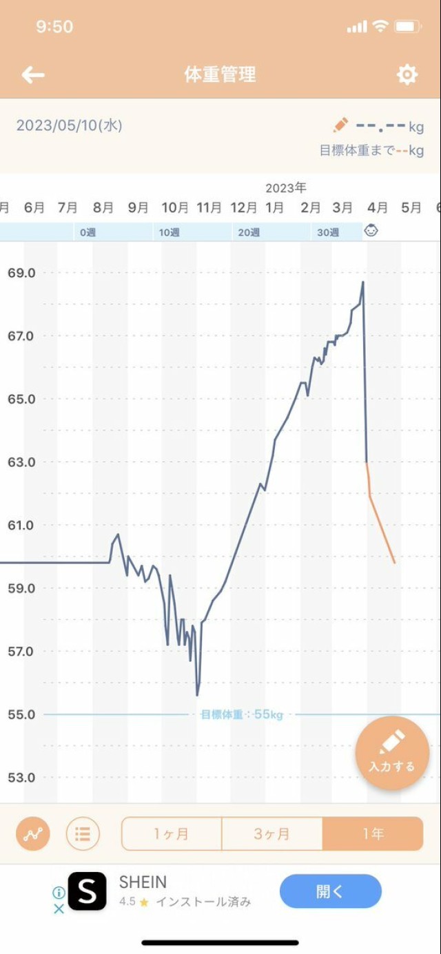体重管理 体重は30wで妊娠前+…まあまあ