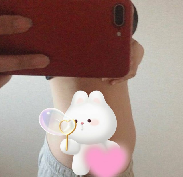体重管理 現在妊娠8ヶ月/30w5d現在のお腹写真?(恥ずかしい所はスタンプ?) 悪阻が酷過ぎて体重激減したためなのか?身長が高いからなのか?余り目立ちません(•ᴗ•; )でも明らかに寸胴になってる?因みに体重は未だ妊娠前に戻らずですがベビ???は順調に成長中❣️ 8ヶ月