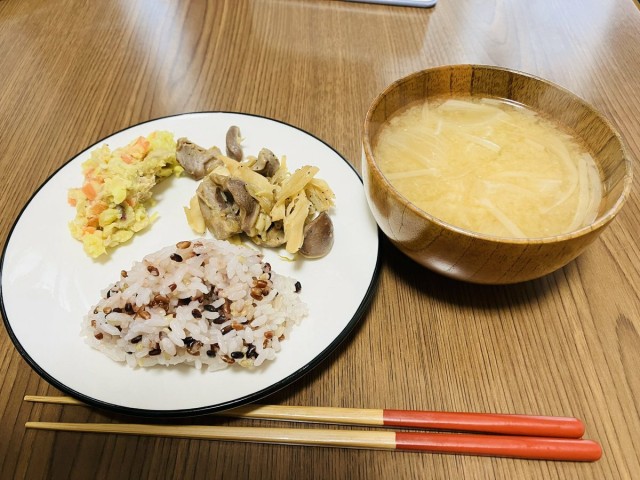 体重管理 【150日チャレンジ・74日目】 《体重》 (妊娠前+4.4kg、前日比+0.2kg) 冷蔵庫すっからかんなので、朝と昼はあるものご飯❗️栄養無視?(昼は写真撮り忘れたけど、冷凍してたカレーパン食べたよ?) 夕方に買い物行ったから、夕飯はやっと栄養補給❗️緑が恋しかったー❗️サラダうまーい❗️