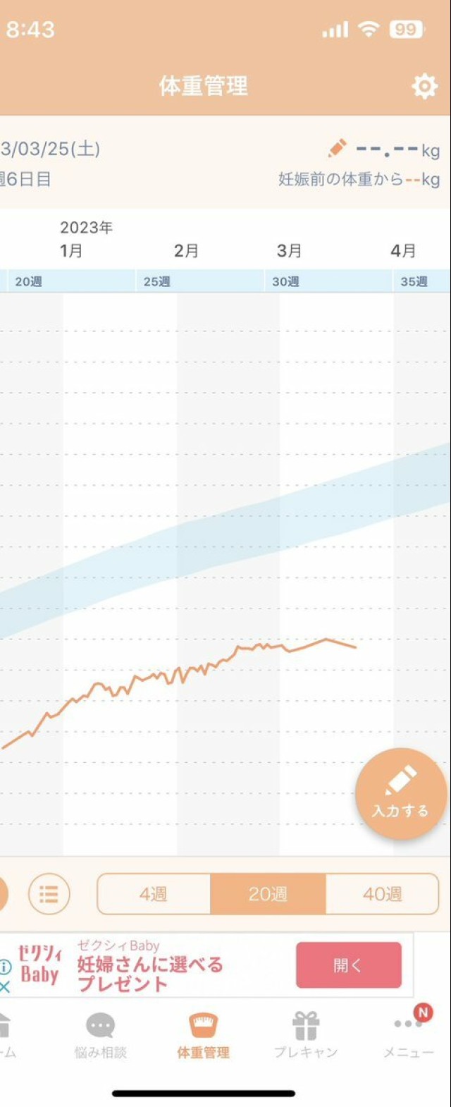 体重管理 2023/3/24 体重55㌔で昨日とあまり変わらず◎ 娘の書類関係を記入するのに 母子手帳をいろいろ見ていたら 妊娠中の経過ってページがあって 初めての検診のときの体重が 43㌔ってなっててびっくりした? 私にそんなときあったんだ…笑 もう40㌔台の頃思いだせない???