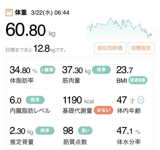 体重管理 オゼンピックダイエット8日目。 体重は同じところあたりウロウロ。 妊娠前に履いてたスカート履いたらなんとかホックはとまったけど下腹ドーンだしウエストのホックのところの上下がパツパツで肉乗ってて流石に見れたもんじゃなかった。やはりあと7キロは落とさないとダメだな。