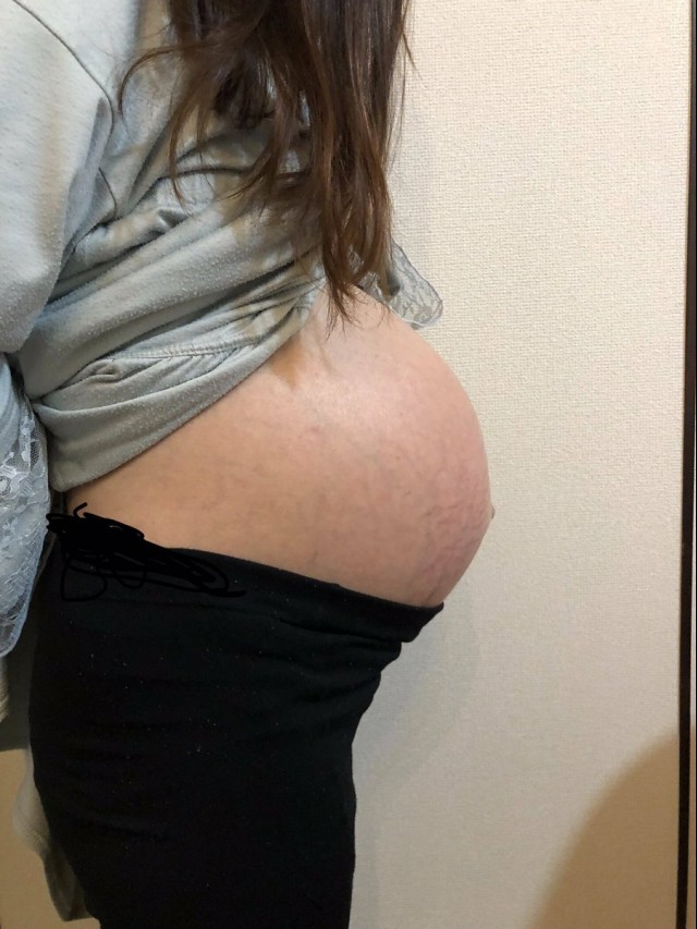 体重管理 40w5d 昨日は限界きたのに1時間くらいしか寝れんかった? なんか痛くない体勢ないんかな。 写真は鏡でみた自分のお腹にびっくりして旦那さんに撮ってもらった! 縦に大きい! +14キロになった!笑 1、2週間で妊娠線も出来てしまったけどもう仕方ない