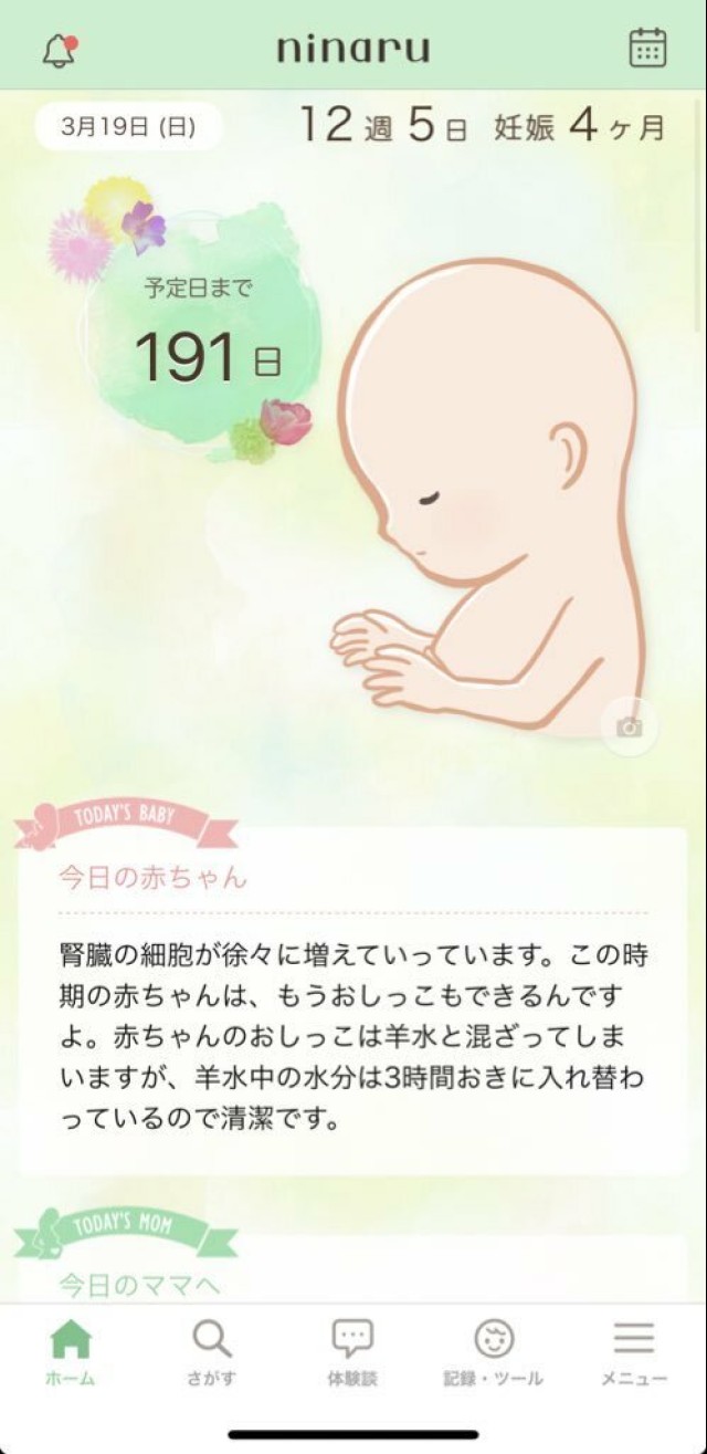 妊娠中の食事 最初適当に妊娠アプリ3つ入れて、後から絞って消すつもりだったけど、良くて使い分けてる ○ninaru→カレンダーに睡眠、食事、体調を記録(夫アプリに情報共有したい人は?) ○トツキトオカ→?が喋る、今日の手紙と週数アドバイス◎ ○babyプラス→?が喋る、?の重さとサイズ感をフルーツで知れる?