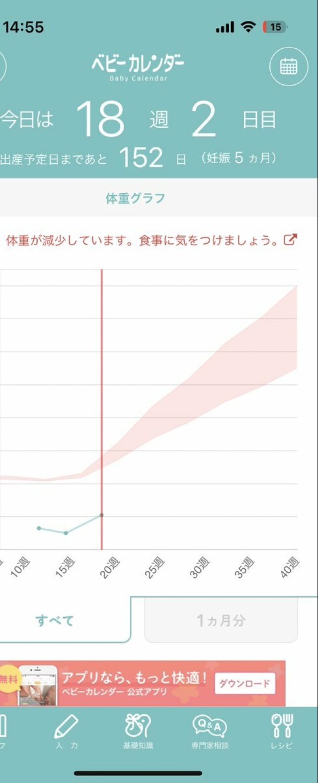 体重管理 前回の健診で体重指摘されたけどアプリなら標準枠なんだよな〜! …? 週数に見合う体重になればいいんだから痩せなくてもいいけど現状維持で頑張りたい てことでいいかな