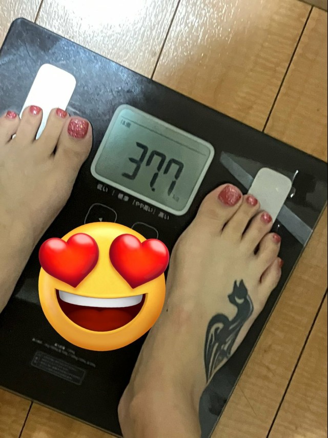 体重管理 はあめちゃくちゃ嬉しい痩せた 気付いたら妊娠前より体重落ちてる シンデレラ体重☺️ 乳なくなったけど☺️ あと反射でめちゃくちゃ乳写ってた☺️