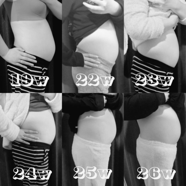 体重管理 26w4d お腹の成長記録✍︎ 妊娠前から+4.3kgで人生最高体重更新〜〜〜? 最近は立ち上がるのも屈むのも苦しくなってきた?? 胎動は相変わらずぼこぼこすごくてたまにおしりに響く感じの時あるんだけど逆子になってるのかな、、?