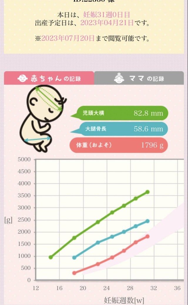 妊娠中の食事 31w0d 妊婦健診⑧ 頭… 太もも… 体重…1,796g 妊娠糖尿病は超ギリギリアウト?? 引き続き食事制限気を付けようとのこと? 成長曲線のど 真ん中を0とすると、今まで+1.5くらいの伸び幅だったのが今日は+0.7で伸びは緩やかに?♀️成果が出た✨