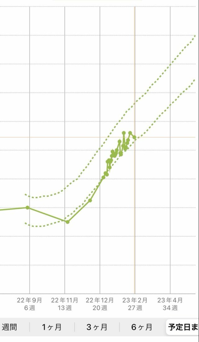 体重管理 順調に右肩上がり☺️ 目安破線内におさまるよう、つわりで減った後の体重を妊娠前体重に設定し直したら推移わかりやすくて良い!