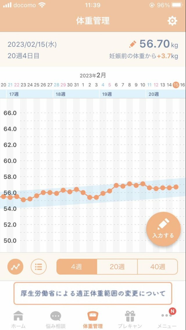体重管理 体重について、クリニックで触れられたことがないんよな、、、 一応毎朝同じ条件で測ってて、妊娠前から±3.7キロ 理想よりは増加スピード早いっぽいけど、身長168cmあるからまだいけるんちゃうかって内心思ってる?
