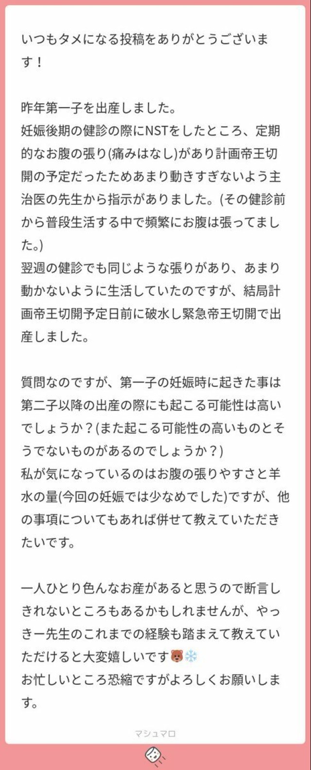 体重管理 ?「第一子と第二子以降の妊娠経過で同じことが起きる可能性は高いですか?」 そうですねえ?❄️ もちろん100%ではないですが、なんとなーく同じ雰囲気になることは多いです。 複数人ご出産されていて、ほぼ全員同じくらいの週数で出産されていたり、 あるいはほぼ同じ出生体重だったり。