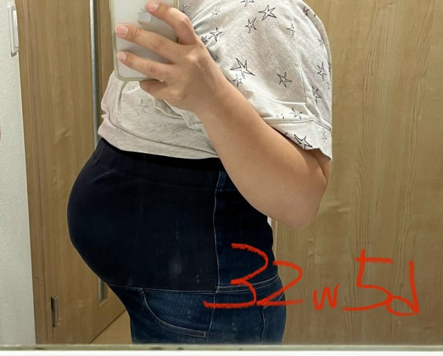 体重管理 まだ1ヶ月あるのにこのお腹? 出方がヤバいから記念にパシャリしたよ こんなとんがって前に出てるの、そりゃあ座るにも邪魔なわけだよねぇ (オマケに人生MAX体重更新しそうよ?) 大きさ的には娘妊娠時の40週超(笑) 私の薄くなってる子宮は持つのかしら……もってくれなきゃ困るのだけどね