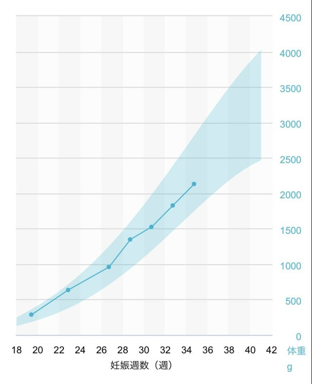 体重管理 34w5d健診 子2131gでようやく2kg突破! 週数相当ではあるけどちょっと小さめなのかな? 自分自身が早産で産まれた時の2090gを超えてくれて嬉しい☺️ 私は妊娠前+7.4kgで、このペース維持とのこと。自分の体重増やさなくても、子は勝手に大きくなるらしい?♀️